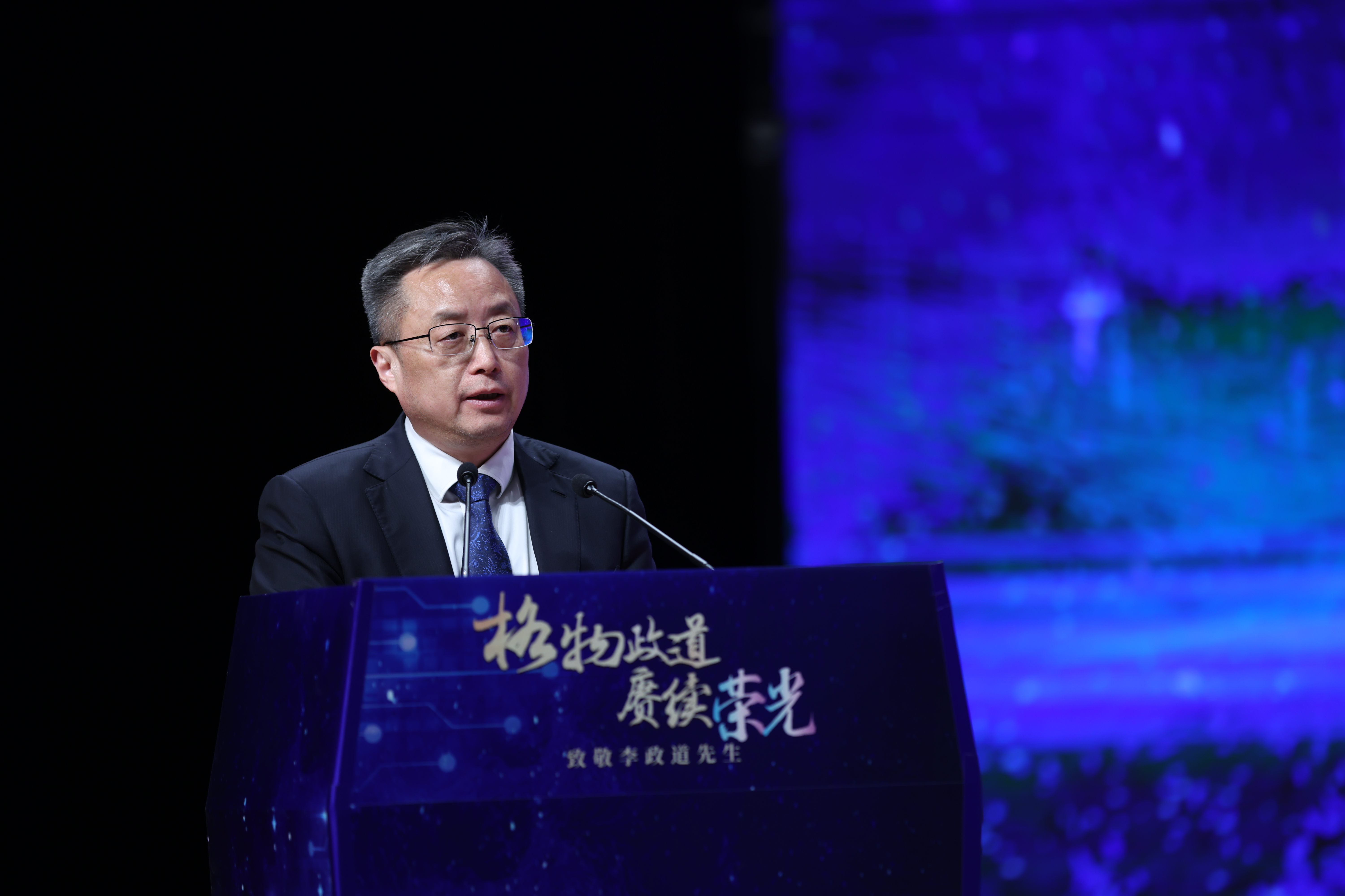 张晓宏在致辞中表示,李政道先生的一生,是潜心科研的一生。我们致敬先生,就是要学习他严谨治学的求实精神、创新精神;学习他奖掖后学的远见卓识;学习他爱国报国的赤子情怀。张晓宏强调,先生的赤子之心、拳拳之忱,将永远激励一代代苏大人追光前行,学校定会秉承先生遗志,为党育人、为国育才,以学校事业的高质量发展向先生致敬。